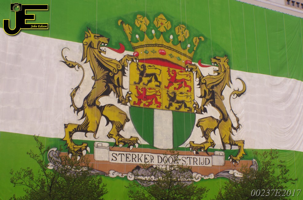06-05-2017 - Rotterdamse vlag van 80x41 meter over Shell gebouw Rotterdam
