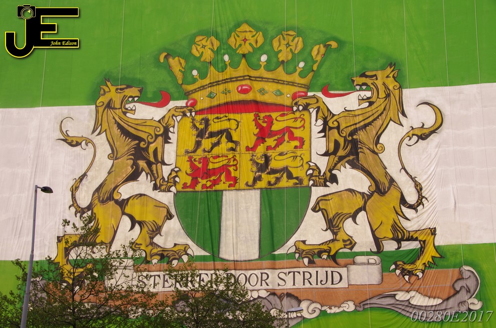 06-05-2017 - Rotterdamse vlag van 80x41 meter over Shell gebouw Rotterdam