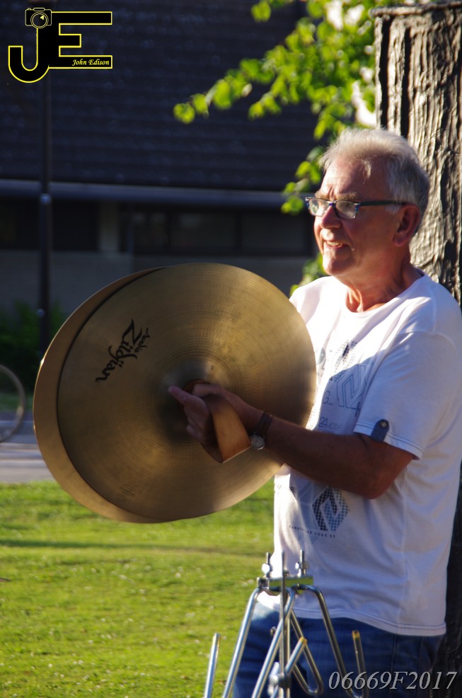 17-06-2017 Tuinstoelenconcert Volharding bij beeld van Biggo in Rhoon