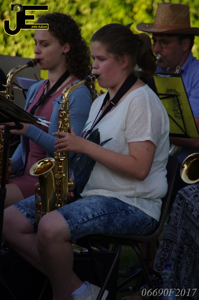 17-06-2017 Tuinstoelenconcert Volharding bij beeld van Biggo in Rhoon