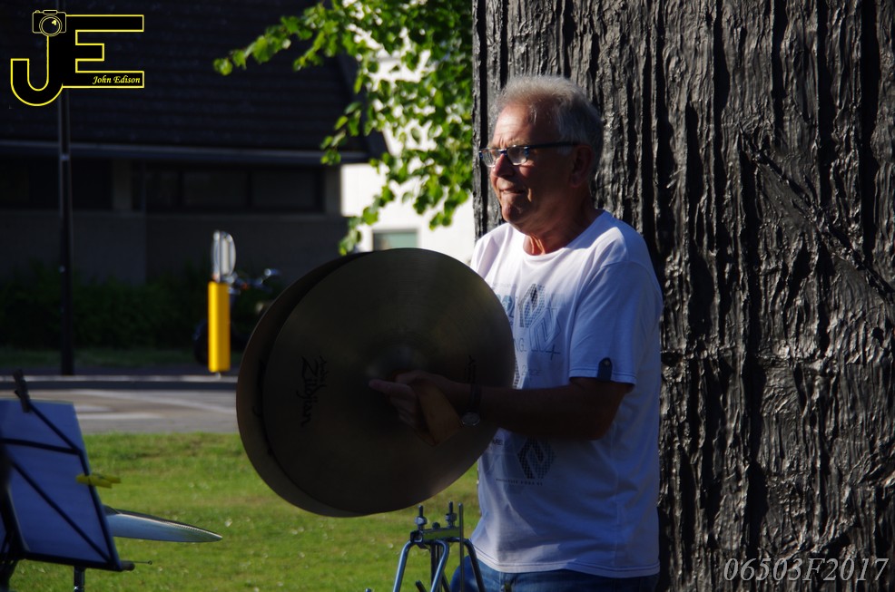 17-06-2017 Tuinstoelenconcert Volharding bij beeld van Biggo in Rhoon