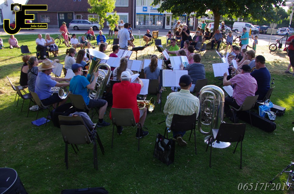 17-06-2017 Tuinstoelenconcert Volharding bij beeld van Biggo in Rhoon