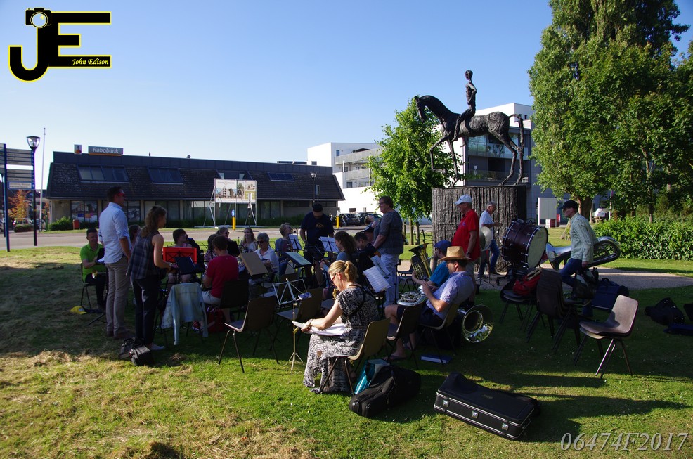 17-06-2017 Tuinstoelenconcert Volharding bij beeld van Biggo in Rhoon