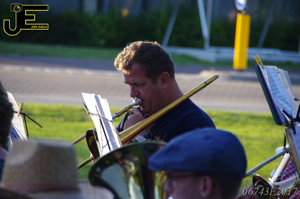 17-06-2017 Tuinstoelenconcert Volharding bij beeld van Biggo in Rhoon