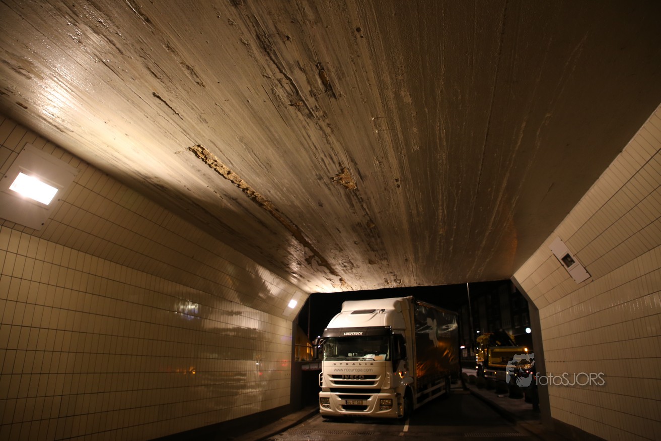 11-11-2017 - Vrachtwagen vast onder viaduct in Rotterdam Pleinweg