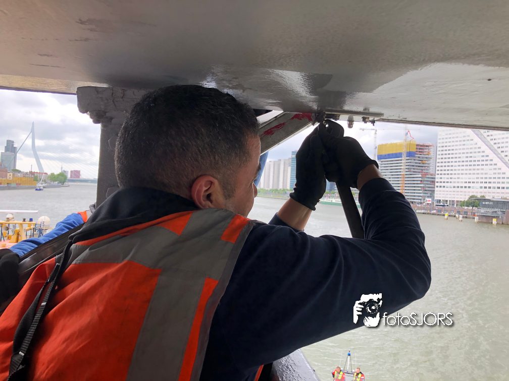 01-07-2020 - Schip botst tegen Willemsbrug en verliest drie containers