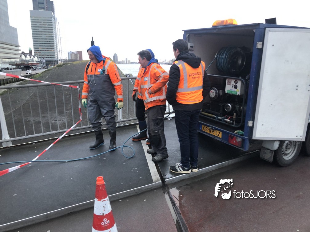25-02-2022 - Erasmusbrug bij de grendels (bij pijler 5) schoongemaakt