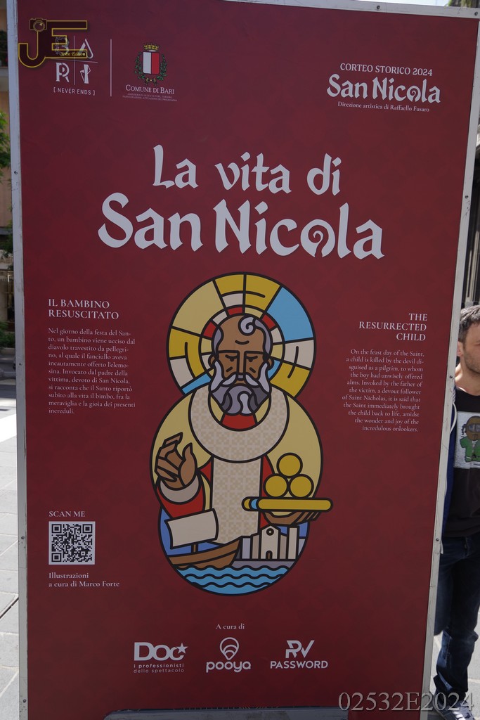 08-05-2024 - Sint Nicolaas borden op winkelstraat met levensverhaal Bari