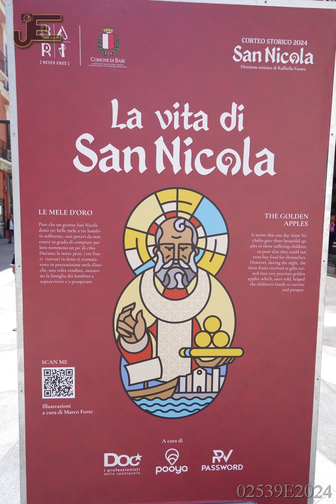 08-05-2024 - Sint Nicolaas borden op winkelstraat met levensverhaal Bari