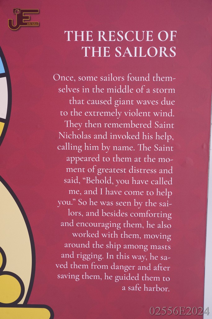 08-05-2024 - Sint Nicolaas borden op winkelstraat met levensverhaal Bari