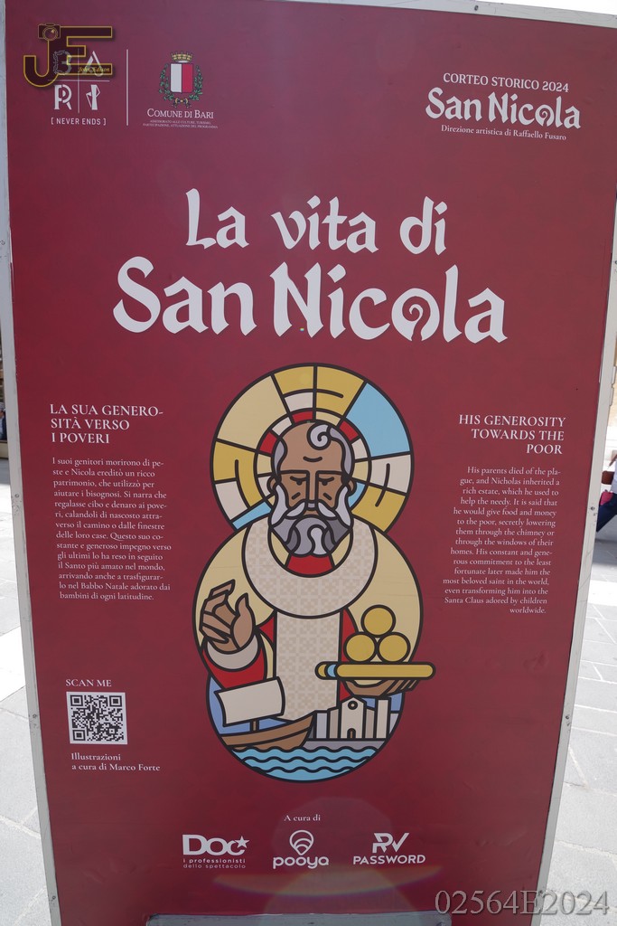 08-05-2024 - Sint Nicolaas borden op winkelstraat met levensverhaal Bari