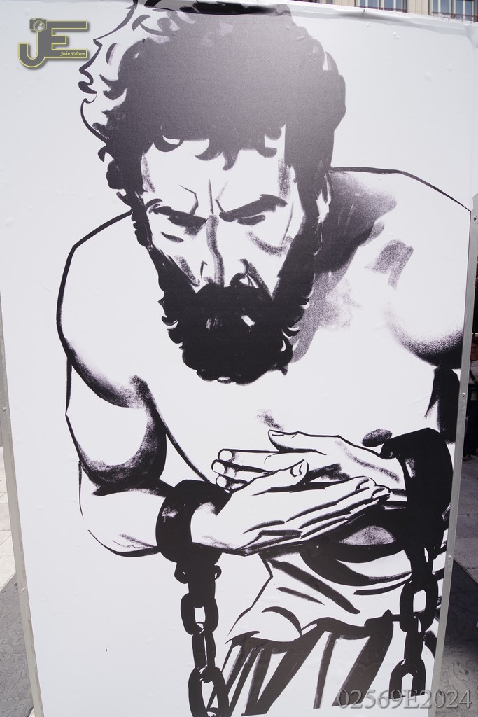 08-05-2024 - Sint Nicolaas borden op winkelstraat met levensverhaal Bari