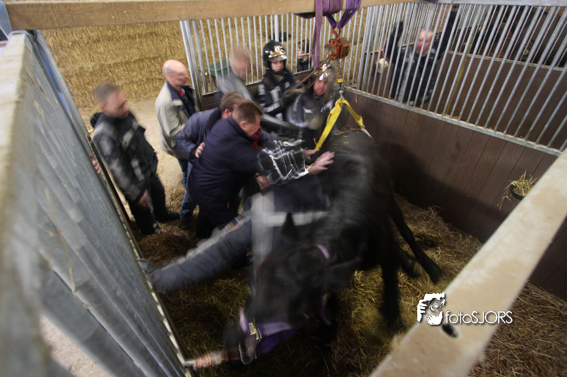 18-01-2010 Brandweer zet een paard op zijn benen aan de Omloopseweg te Rhoon