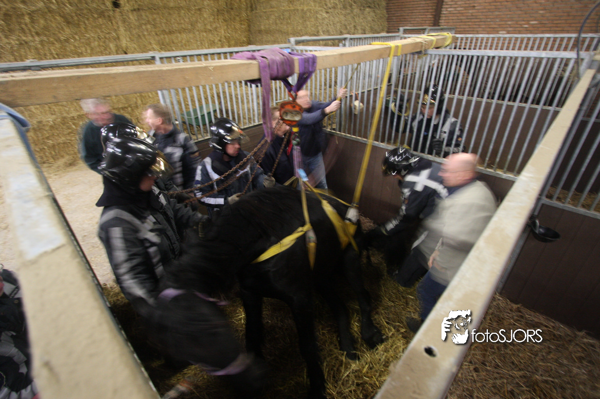 18-01-2010 Brandweer zet een paard op zijn benen aan de Omloopseweg te Rhoon
