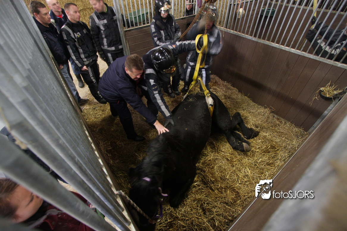 18-01-2010 Brandweer zet een paard op zijn benen aan de Omloopseweg te Rhoon