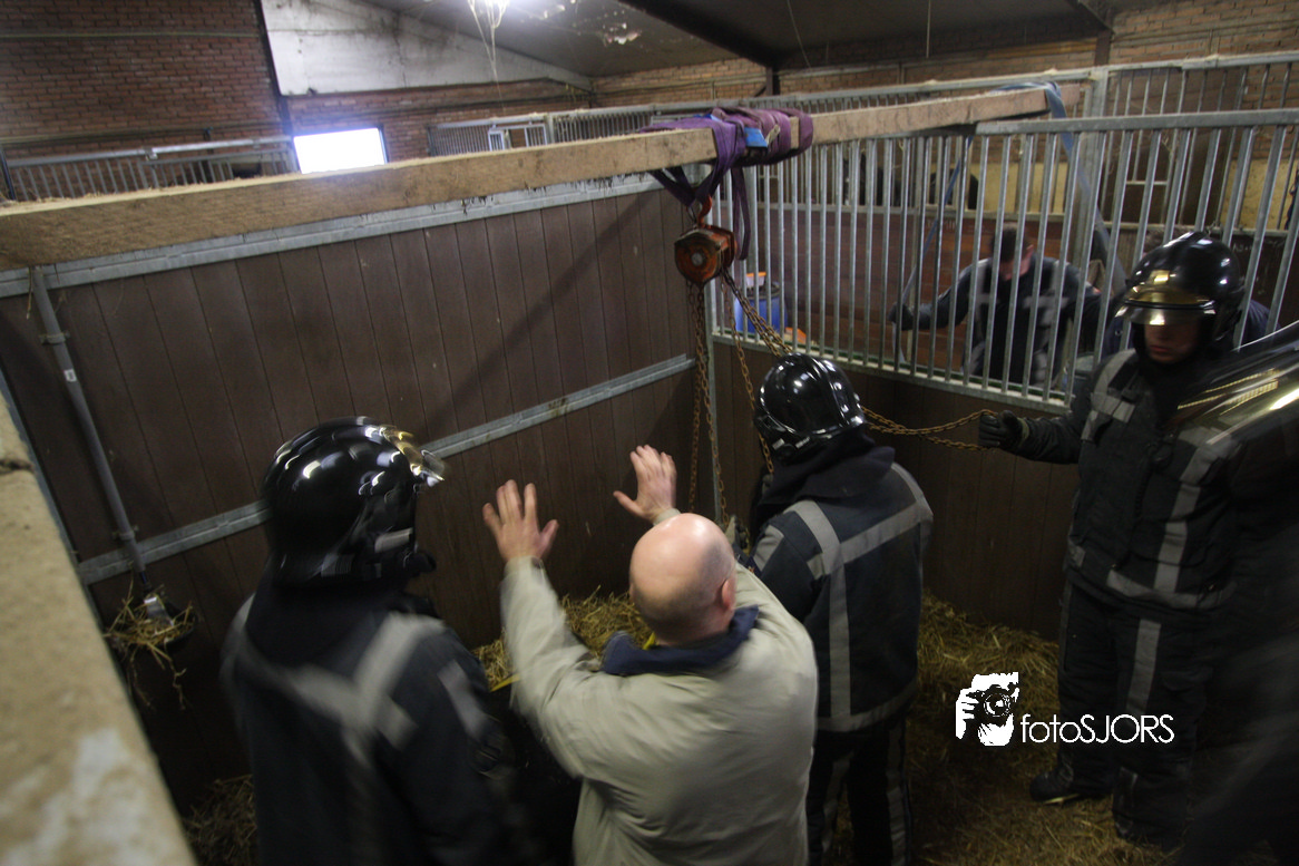 18-01-2010 Brandweer zet een paard op zijn benen aan de Omloopseweg te Rhoon