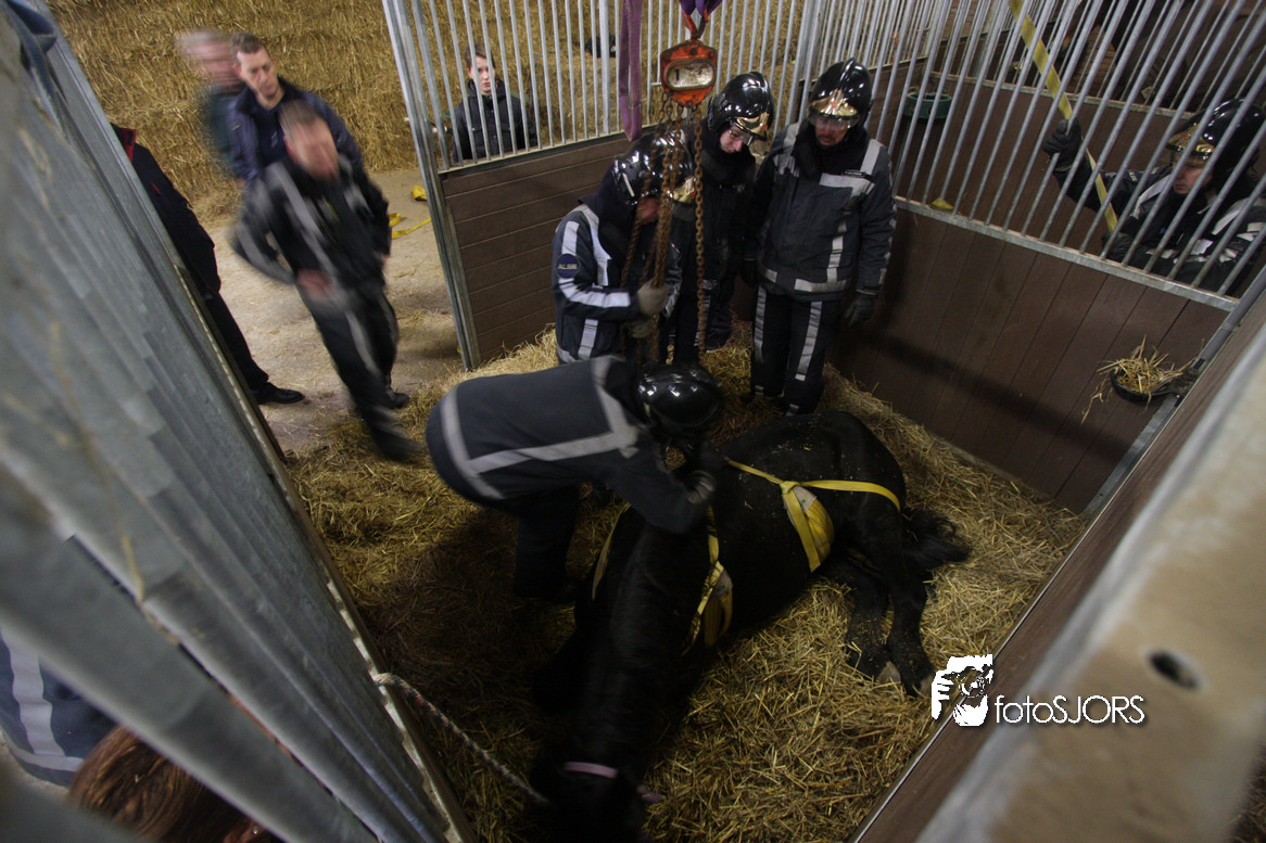 18-01-2010 Brandweer zet een paard op zijn benen aan de Omloopseweg te Rhoon