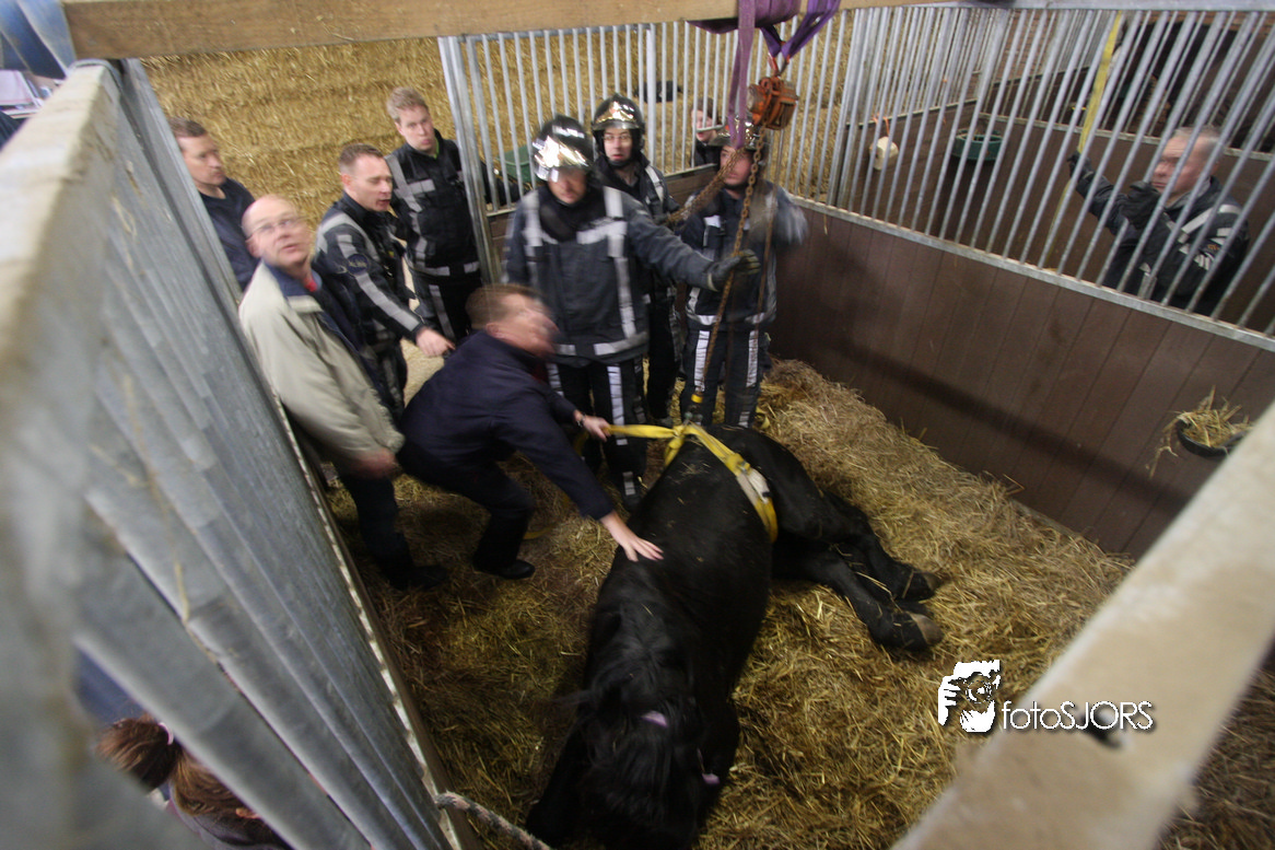 18-01-2010 Brandweer zet een paard op zijn benen aan de Omloopseweg te Rhoon