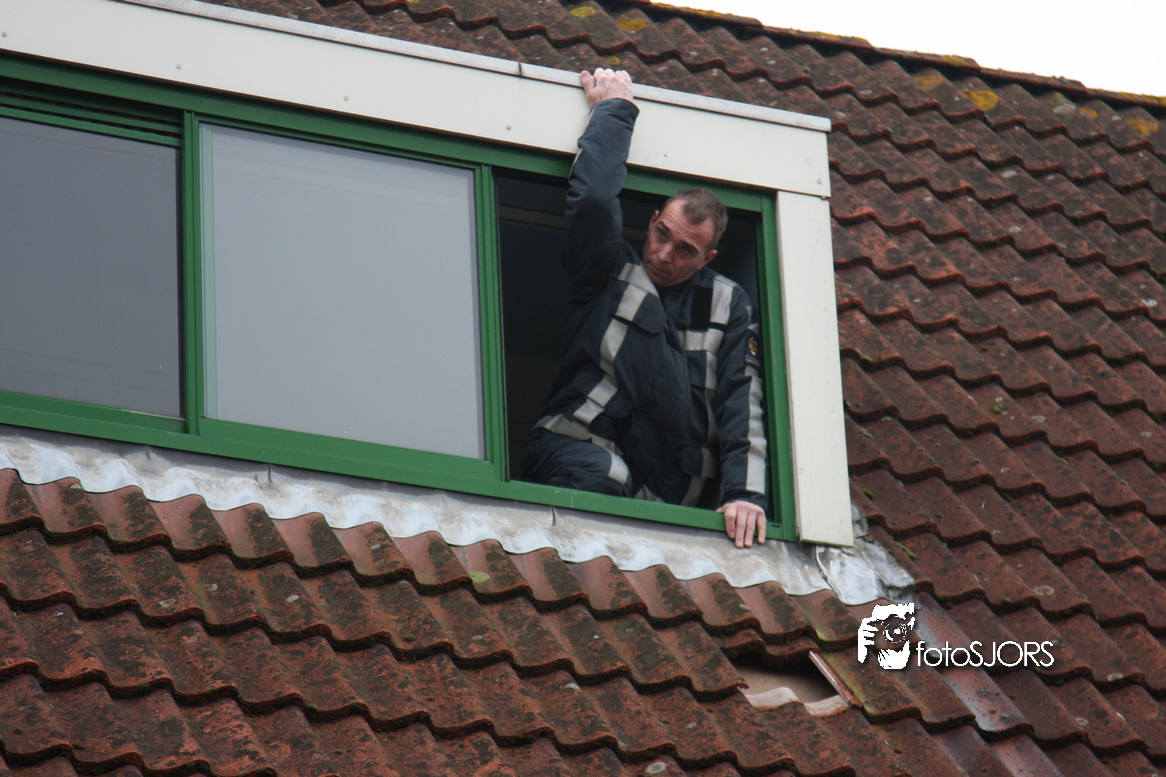 23-01-2010 Brandweer redt 2 poesen van het dak aan het Nachtwaker in Rhoon -