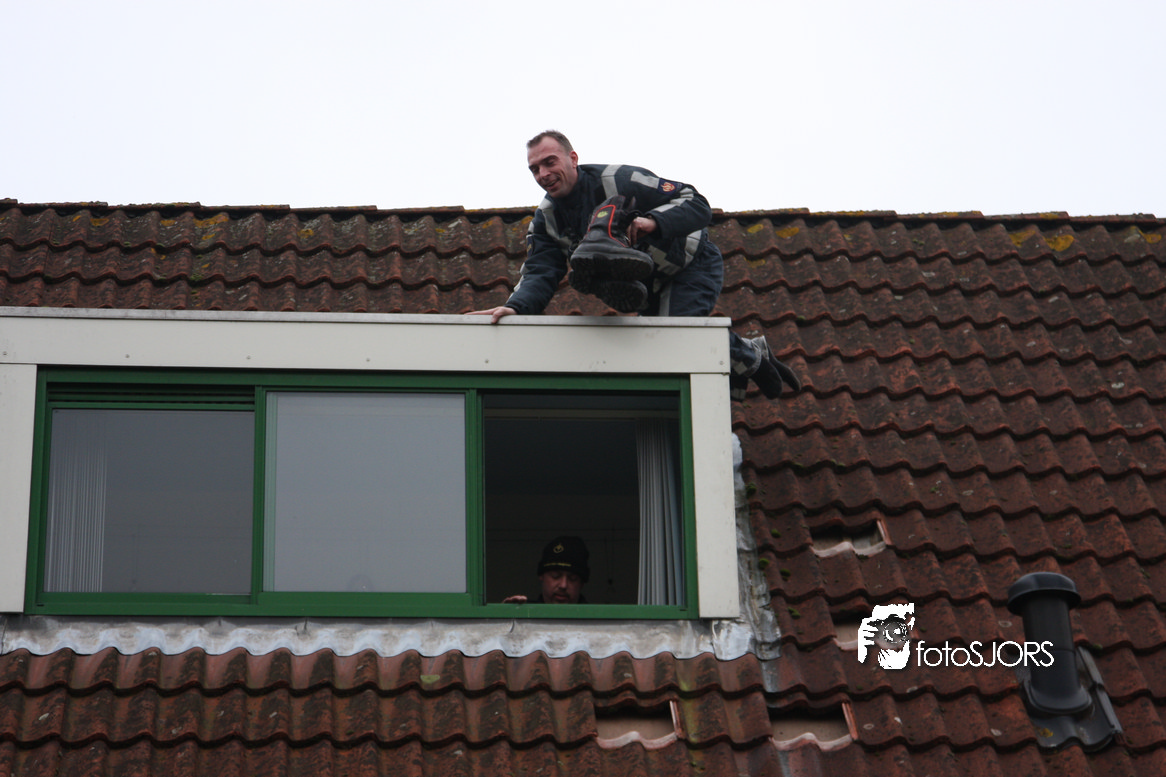 23-01-2010 Brandweer redt 2 poesen van het dak aan het Nachtwaker in Rhoon -