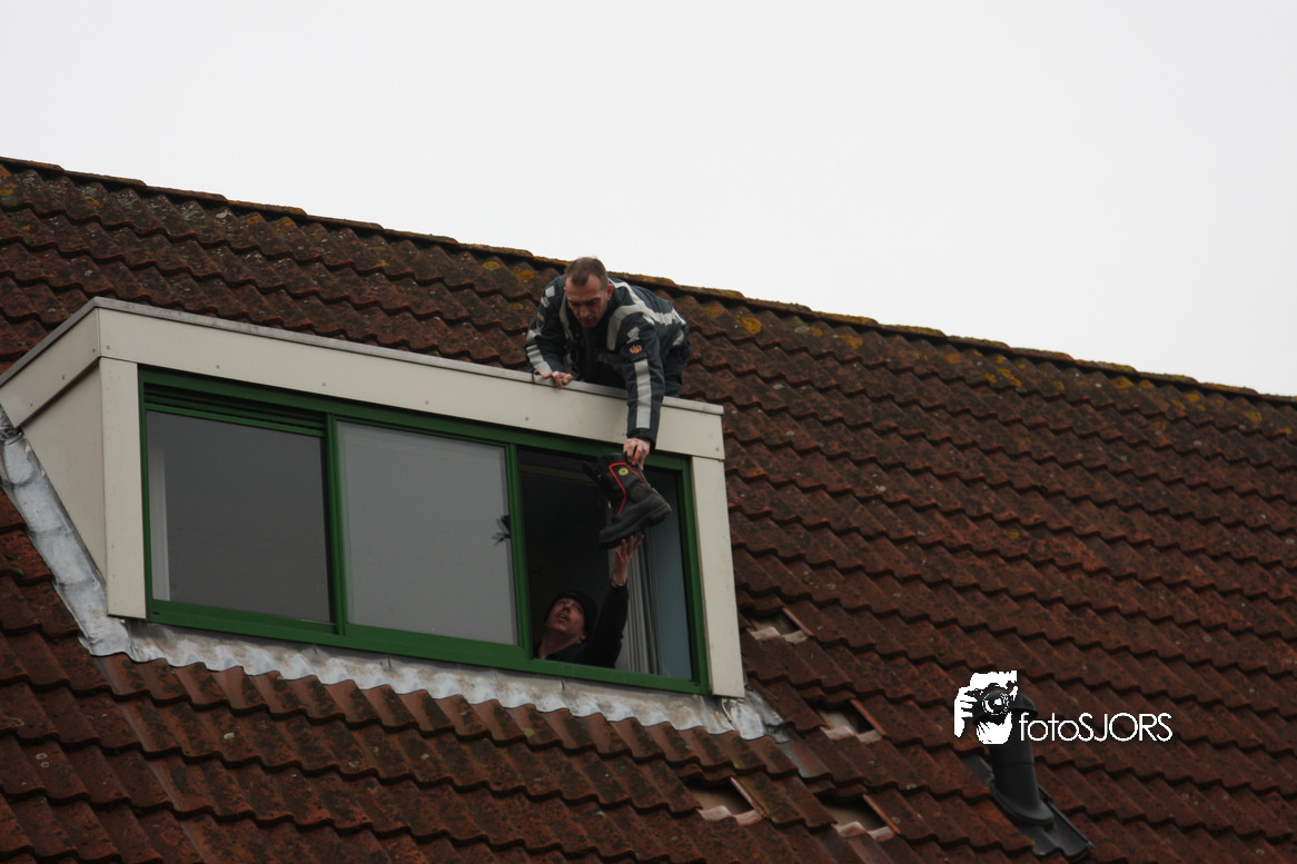 23-01-2010 Brandweer redt 2 poesen van het dak aan het Nachtwaker in Rhoon -