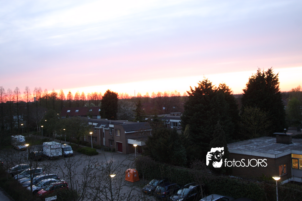 Zonsondergang in Rhoon vanaf het wapen en kerk 15-4-2010