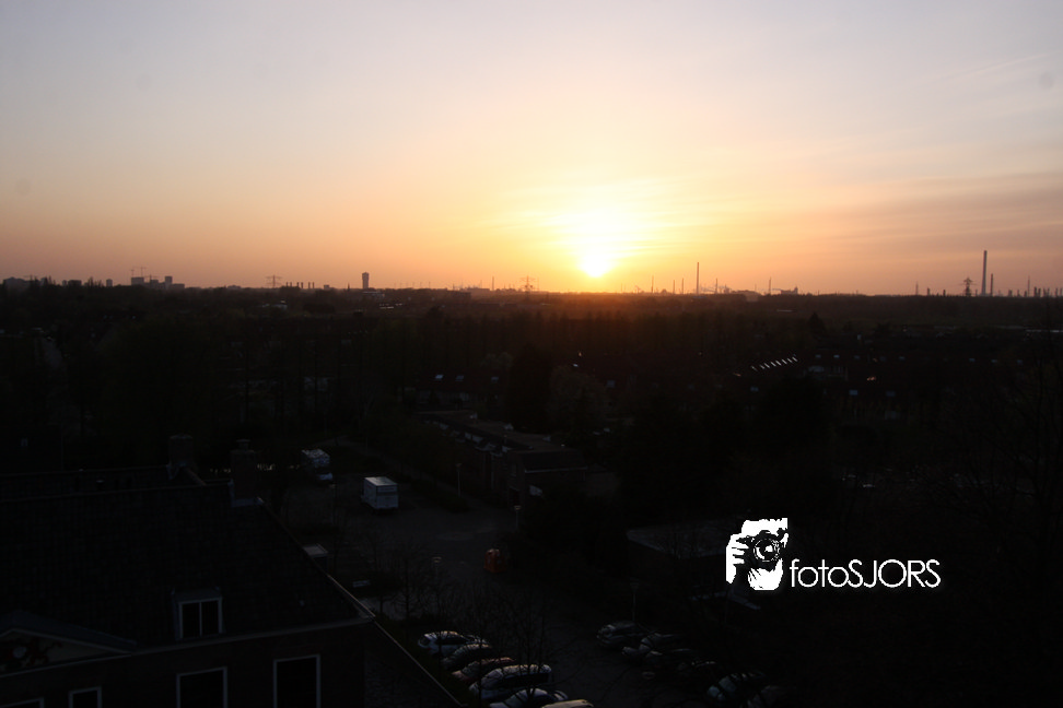 Zonsondergang in Rhoon vanaf het wapen en kerk 15-4-2010