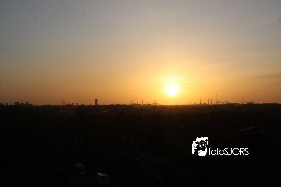 Zonsondergang in Rhoon vanaf het wapen en kerk 15-4-2010
