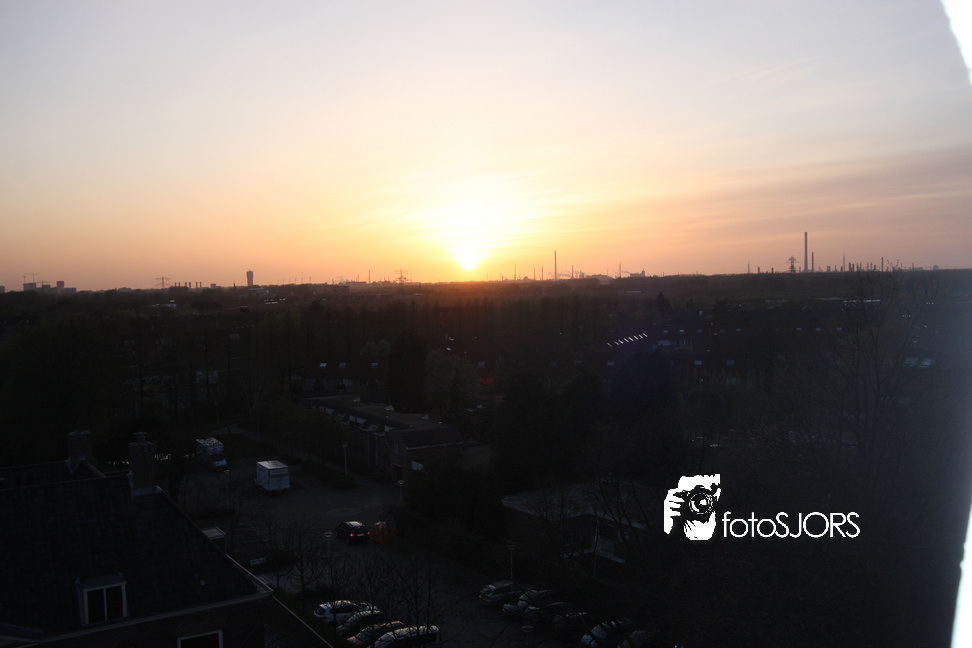 Zonsondergang in Rhoon vanaf het wapen en kerk 15-4-2010