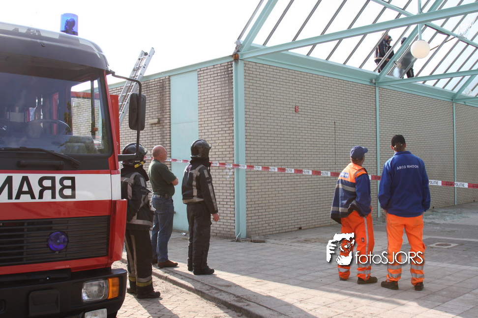 14-05-2010 - Brandweer haalt gevaarlijk loshangende glasplaten weg