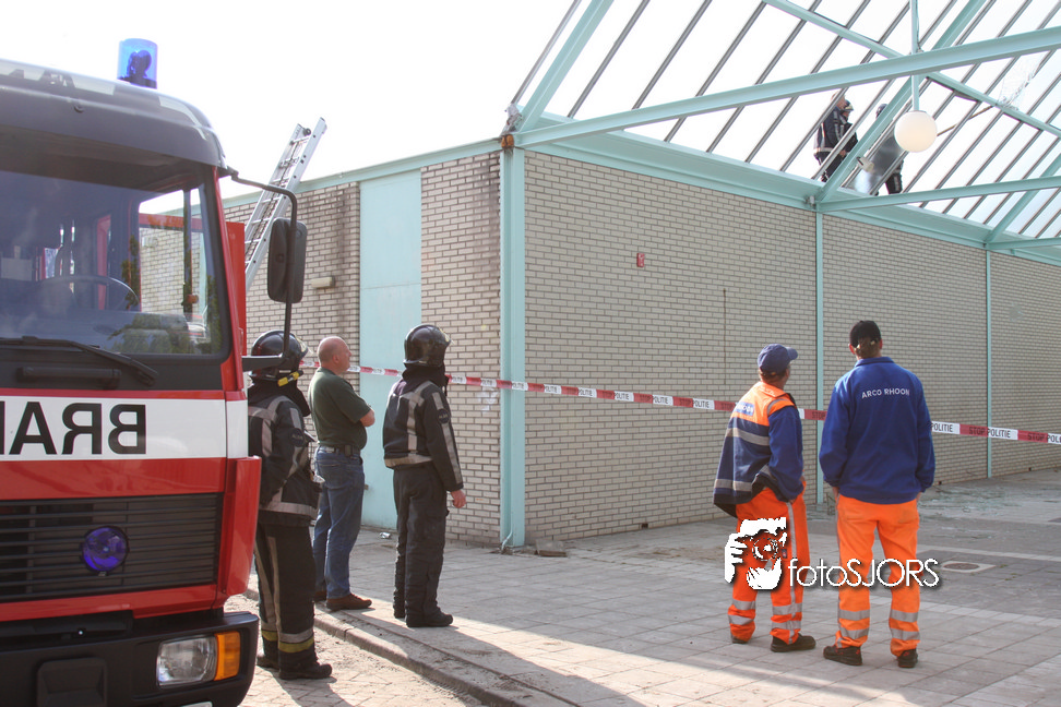 14-05-2010 - Brandweer haalt gevaarlijk loshangende glasplaten weg