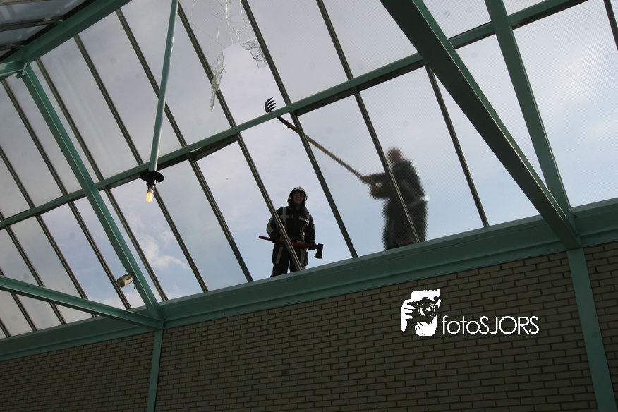 14-05-2010 - Brandweer haalt gevaarlijk loshangende glasplaten weg