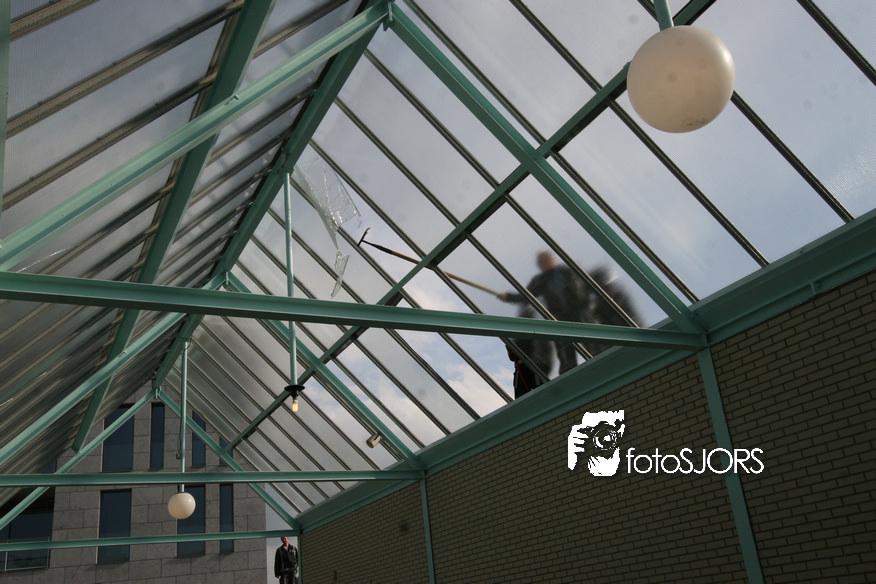 14-05-2010 - Brandweer haalt gevaarlijk loshangende glasplaten weg