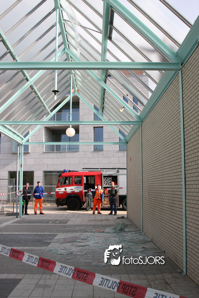 14-05-2010 - Brandweer haalt gevaarlijk loshangende glasplaten weg