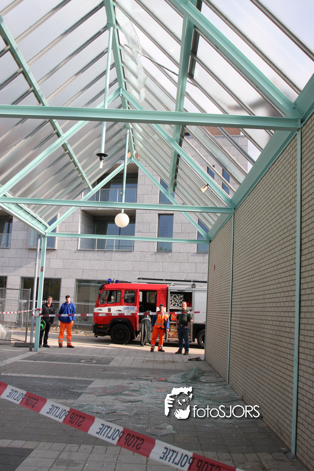 14-05-2010 - Brandweer haalt gevaarlijk loshangende glasplaten weg