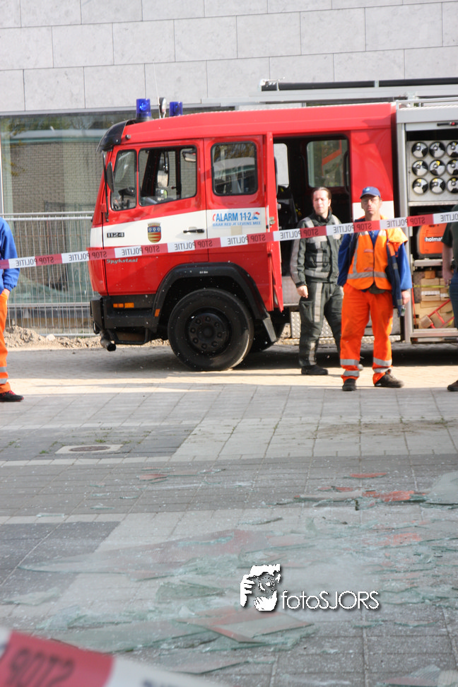 14-05-2010 - Brandweer haalt gevaarlijk loshangende glasplaten weg