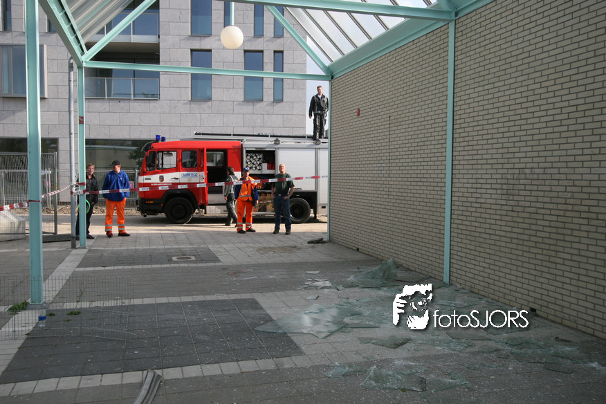 14-05-2010 - Brandweer haalt gevaarlijk loshangende glasplaten weg