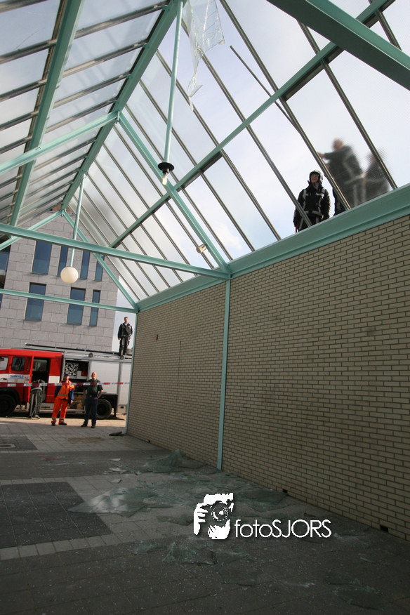 14-05-2010 - Brandweer haalt gevaarlijk loshangende glasplaten weg
