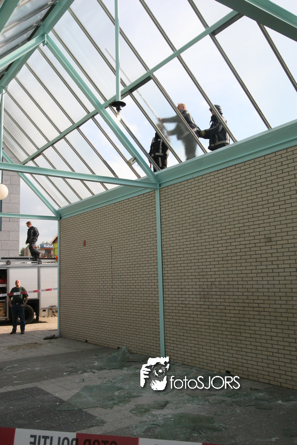 14-05-2010 - Brandweer haalt gevaarlijk loshangende glasplaten weg