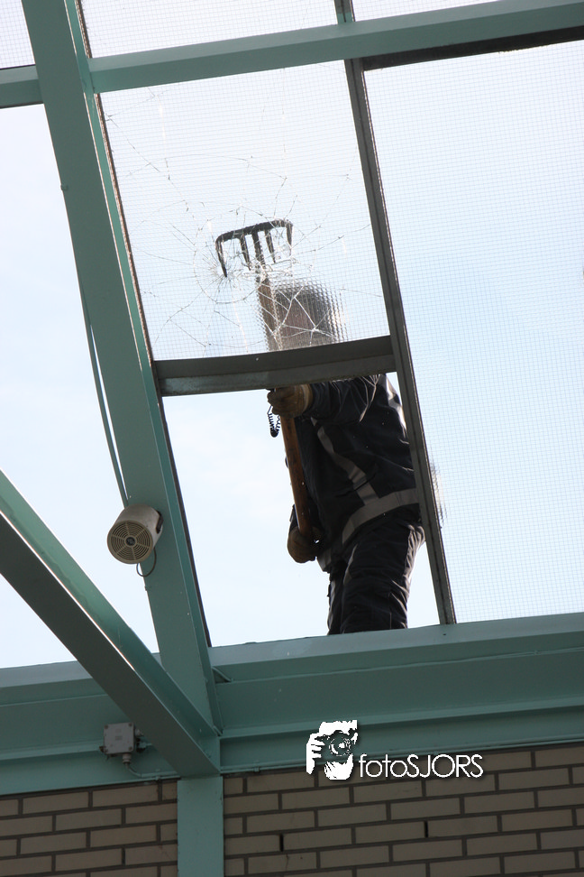 14-05-2010 - Brandweer haalt gevaarlijk loshangende glasplaten weg
