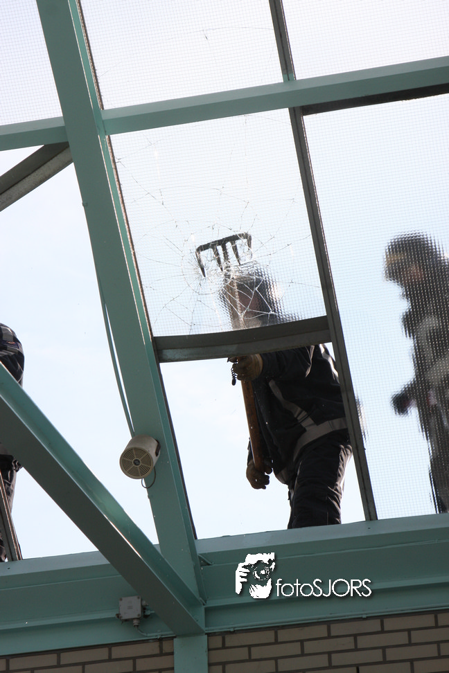 14-05-2010 - Brandweer haalt gevaarlijk loshangende glasplaten weg