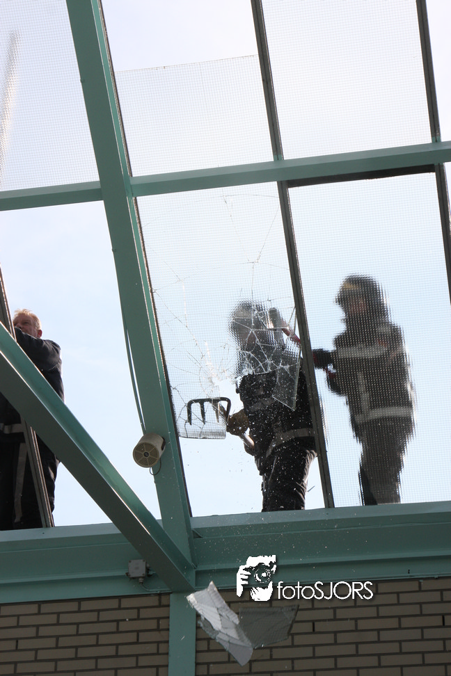 14-05-2010 - Brandweer haalt gevaarlijk loshangende glasplaten weg