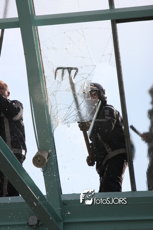 14-05-2010 - Brandweer haalt gevaarlijk loshangende glasplaten weg