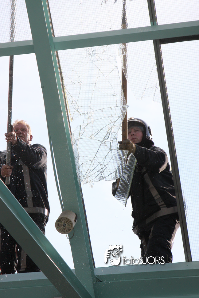 14-05-2010 - Brandweer haalt gevaarlijk loshangende glasplaten weg