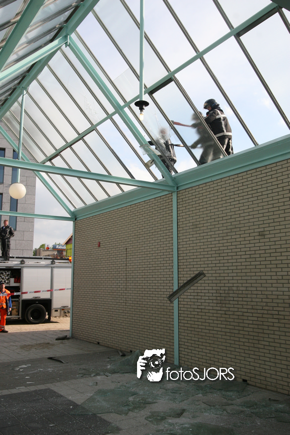 14-05-2010 - Brandweer haalt gevaarlijk loshangende glasplaten weg