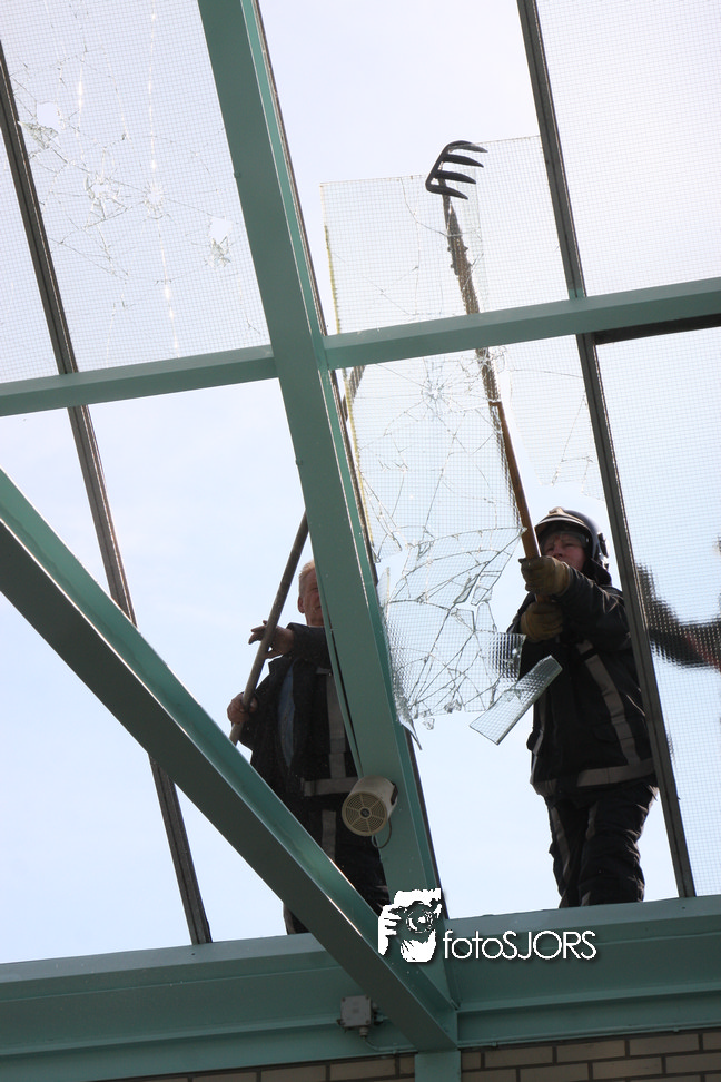 14-05-2010 - Brandweer haalt gevaarlijk loshangende glasplaten weg