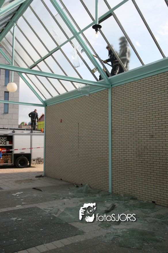 14-05-2010 - Brandweer haalt gevaarlijk loshangende glasplaten weg