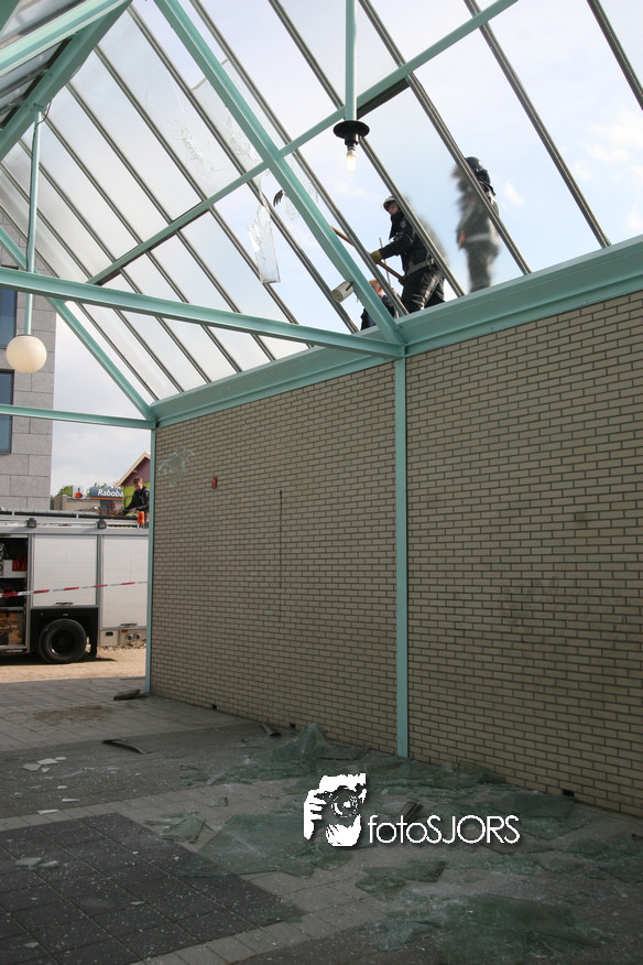 14-05-2010 - Brandweer haalt gevaarlijk loshangende glasplaten weg