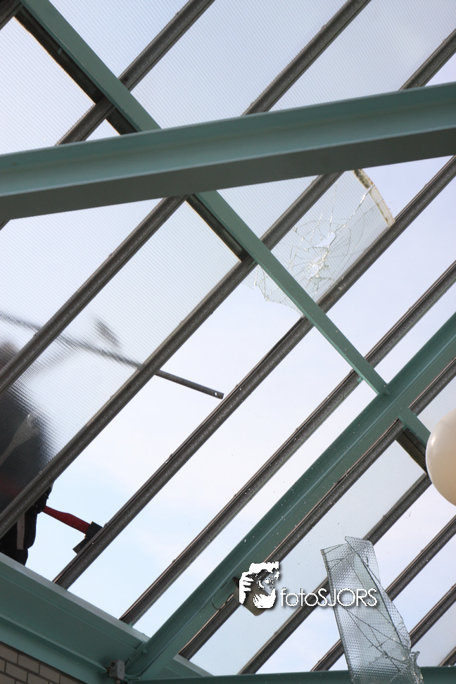 14-05-2010 - Brandweer haalt gevaarlijk loshangende glasplaten weg