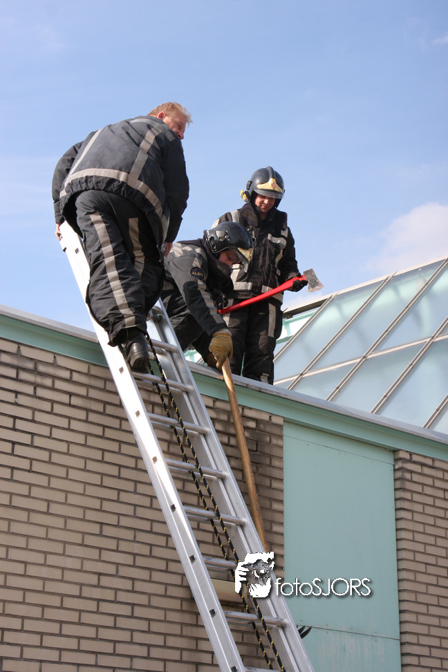 14-05-2010 - Brandweer haalt gevaarlijk loshangende glasplaten weg